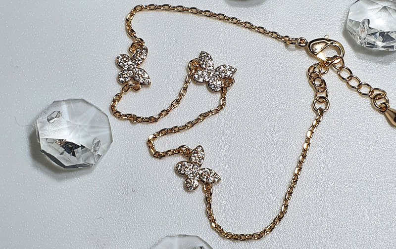 Pulsera con alargue bañada en oro 21kts con engaste de cristales blancos facetados