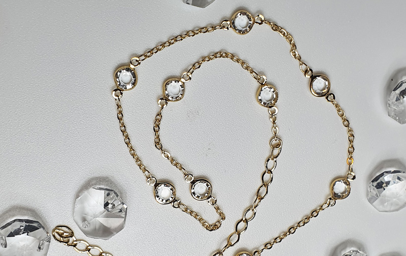 Collar con alargue bañado en oro 21kts con engaste de cristales blancos facetados entre eslabones